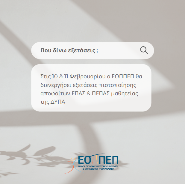 ΔΗΛΩΣΤΕ ΣΥΜΜΕΤΟΧΗ ΣΤΑ ΕΡΓΑΣΤΗΡΙΑ ΚΑΙ ΣΕΜΙΝΑΡΙΑ ΣΥΜΒΟΥΛΕΥΤΙΚΗΣ ΚΑΙ ΕΠΑΓΓΕΛΜΑΤΙΚΟΥ ΠΡΟΣΑΝΑΤΟΛΙΣΜΟΥ ΤΟΥ ΕΟΠΠΕΠ